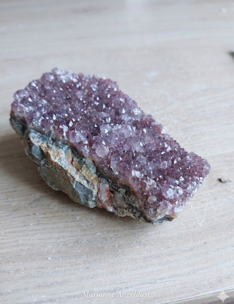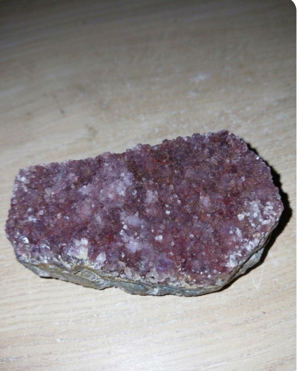 - Uiterlijk: Diep paarse kleur, vaak met zwarte insluitsels van hematiet.